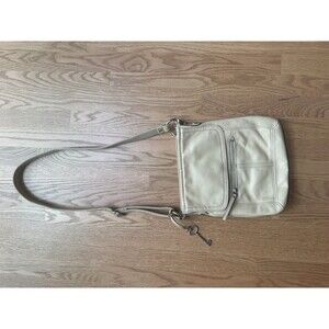 While soft and gorgeous, this bag has two issues. One is an easy fix, one is a permanent issue, albeit subtle. See last two photos. The fixable issue is a tear in the strap connector to the purse that needs to be sewn. This can be done at home and will not be obvious when you wear it. The other is a 2 inch white mark on the front of the purse where someone cleaned it too vigorously, rubbing off the yellow leather dye. It is only visible if you look closely. Not obvious while wearing it. I have given it a Leather CPR treatment so the leather is buttery soft and I cleaned the inside, which is like new. Had very little wear on the inside. This purse also has the key charm that is often missing on older purses. Priced at half of what this purse typically sells for. Enjoy this lovely purse at a deep discount!