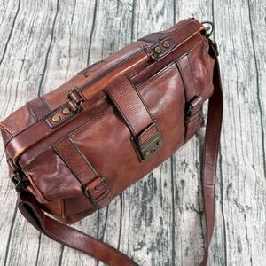 This Fossil vintage genuine leather doctor bag combines timeless craftsmanship with durable everyday functionality. Made from rich, full-grain natural leather, this structured satchel features classic doctor-bag styling, brass hardware, dual buckle accents, and a secure top flap with lock closure.