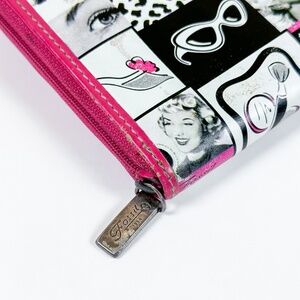 Add a bold, vintage vibe to your bag collection! This Fossil Liza Pop Art Zip Around Wallet features a black-and-white collage of retro faces, accessories, and patterns with eye-catching hot pink accents. Perfect for Y2K and vintage fashion lovers!