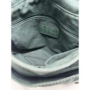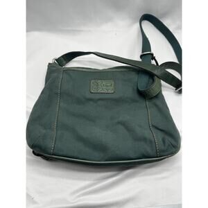 Fossil Lizette Teal Leather Canvas Messenger Crossbody Satchel Purse Distress