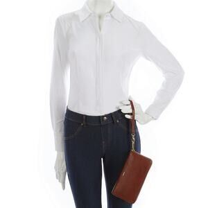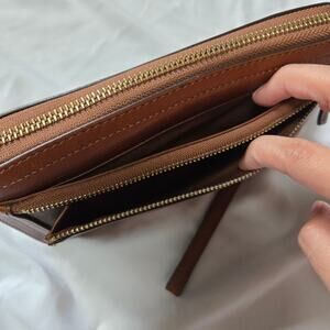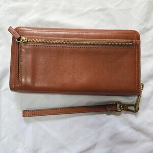 Fossil Logan Brown Leather RFID Zip Around Clutch With Detachable Wrist Strap