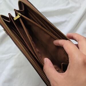 Fossil Logan Brown Leather RFID Zip Around Clutch With Detachable Wrist Strap
