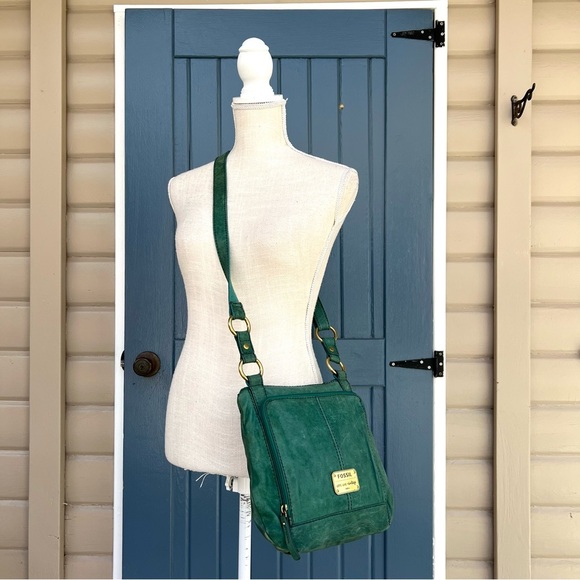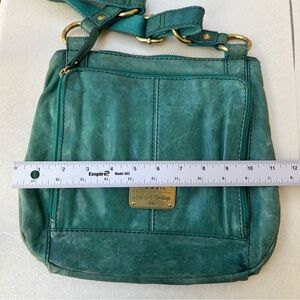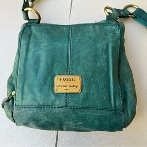 Fossil Long Live Vintage Boho Teal Green Leather Crossbody Bag