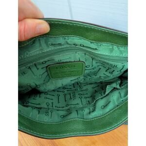 Fossil Long Live Vintage Maddox Crossbody Purse Green Genuine Leather Key Charm