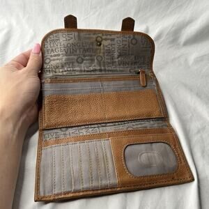 Fossil Long Live Vintage Wallet Buckles Key Hole Brown Leather