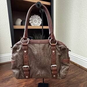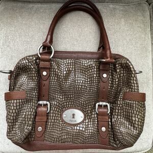 Fossil Maddox Satchel Shoulder Bag Handbag Brown Leather Croc Embossed Y2K