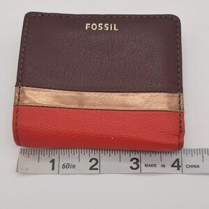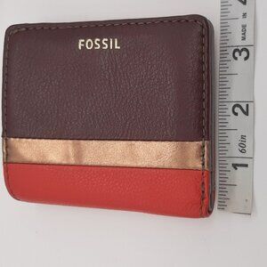 Fossil Madison Bifold Purple Rose Gold and Coral Faux Leather Wallet. Color block faux leather with bronze tone hardware. Very good preowned condition with very little wear.