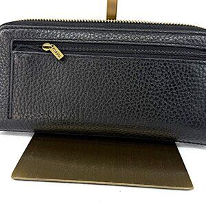This elegant, BRAND NEW, multifunction wallet, crafted from supple black leather, seamlessly combines style and practicality. The Old English brass hardware adds a touch of timeless sophistication, ensuring it remains a staple in your collection for years to come. Inside, you'll find well-organized compartments designed to keep your cards, cash, and essentials neatly in place. Perfect for daily use or special occasions, this wallet is a true testament to classic design and lasting function.