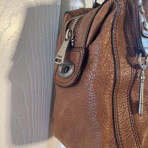 Fossil Marlow Brown Leather satchel faded gold tone hardwares and accent.