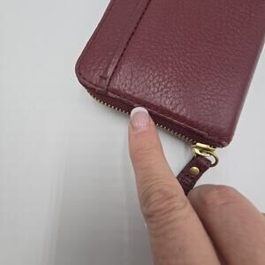 Fossil Maroon Leather Wallet Zip Around Inside Dividers Zip Pocket 4"x8"x1" Slim