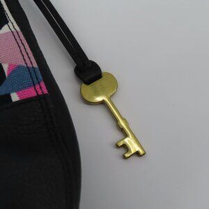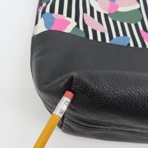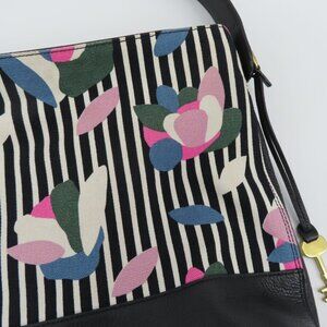 Fossil Maya Hobo Black Pebbled Leather Stripe Flower Floral Canvas Shoulder Bag