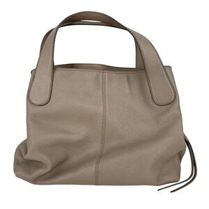 Fossil Maya Satchel Handbag Beige Leather Multi Compartment Zip Magnetic Snap