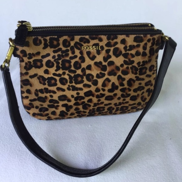 Beautiful Fossil “Memoir” calf skin cheetah print wristlet