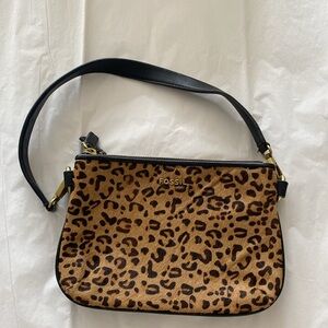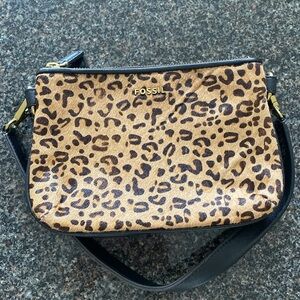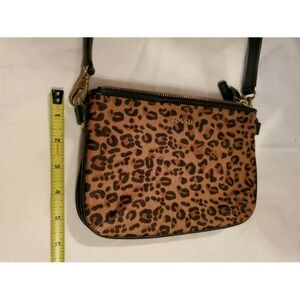 Fossil “Memoir” Top Zip Calf Hair Cheetah Print Purse Bag Wristlet