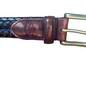 Fossil Men’s Brown Braided Belt Gold Buckle Size 36