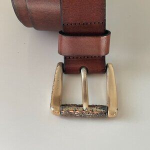 Fossil Men's Brown Genuine Leather Casual Belt Gold Tone Buckle Closure Medium
