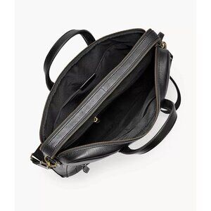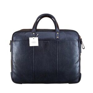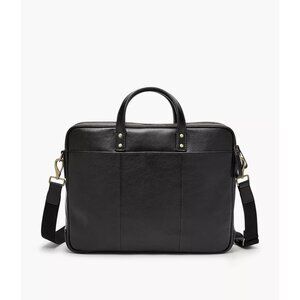 Fossil Men's Haskell Black Leather Briefcase 16.5" X 4" X 12.5"