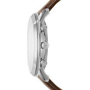 About this Item: Fossil has always been inspired by American creativity and ingenuity. Since 1984, we’ve strived to bring new life into the industry by making quality, fashionable watches and accessories that were both fun and accessible. This timeless watch is inspired by mid-century architecture, with its simple proportions and symmetry. A sculpted case and blend of brushed and polished finishes give Neutra a refined, yet versatile profile that’s made to be dressed up or down. Case size: 44mm; Band size: 22mm; quartz movement with chronograph analog display and date window; hardened mineral crystal lens resists scratches; imported Stainless steel case with cream satin dial; genuine brown leather band with adjustable buckle closure; interchangeable with all 22mm Fossil watch straps. Water resistant to 50m (165ft): suitable for short periods of recreational swimming and showering, but not diving or snorkeling; 5 ATM.