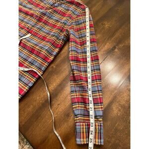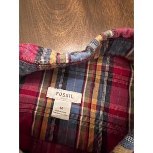 Fossil Men’s Red Blue Plaid Long Sleeve Preppy Casual Button Down Medium