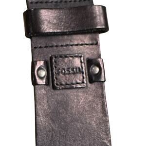 Classic black leather belt from Fossil with a sleek silver buckle. Perfect for any occasion in a mens size 32.