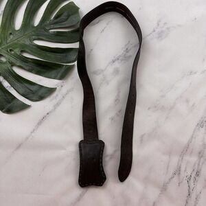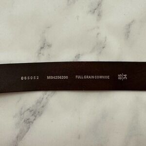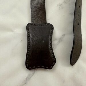 Fossil men's vintage y2k dark brown leather belt with leather wrapped buckle, size 34. It measures about 37 inches from buckle to last hole and is about 1.5 inches wide.