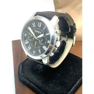 Fossil Men's Watch FS4812IE Quartz Chronograph Black Dial Leather Strap 44mm