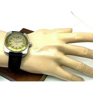 Fossil Men's Watch WB1043 Quartz Green Dial Silver Case 38mm Black Rubber Band
