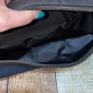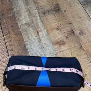 Fossil Men's Leather Framed Toiletry Travel Bag Dark Brown Navy Blue.
