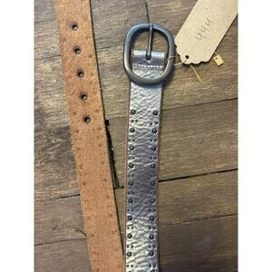 Fossil Metallic Studded Leather Belt w/ Brass Buckle