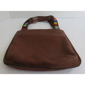 Fossil Mini Bag Brown Pebbled Leather Beaded Rainbow Straps NWOT