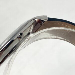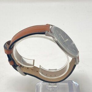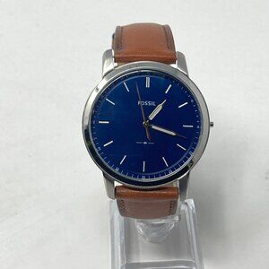Fossil Minimalist Watch Men MISSING CROWN 44mm Silver Tone Blue Dial Leather
