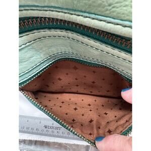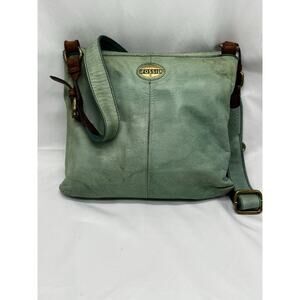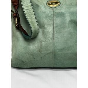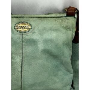 Fossil Mint Green Leather Shoulder Bag Cross Body Zip Closure Well Worn Boho