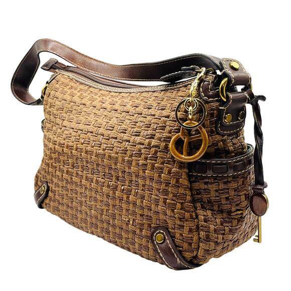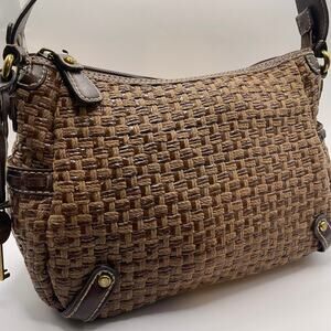 Fossil Modern Vintage Raffia and Leather Satchel Handbag