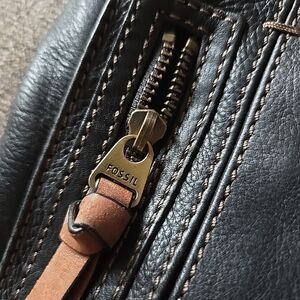 Fossil Morgan Handbag Traveler Pebble Black Topzip Leather Crossbody Messenger