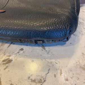 In very nice Preowned condition measuring appt 14x11x2.5” with an adjustable crossbody strap and gold tone hardware.