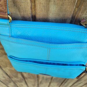 Fossil Morgan Traveler Crossbody Bag Turquoise Pebbled Leather