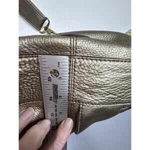 The Fossil Morgan Traveler Crossbody Bag is Gold, and Metallic Leather is a stylish and versatile accessory for women. With a rectangular shape and a medium size, this bag is perfect for travel and everyday use. The gold accents, including the handle/strap color and hardware, add a touch of luxury to the design. The Y2K metallic finish and solid pattern make it a standout piece in any outfit, while the pockets provide practicality for organizing essentials on the go.