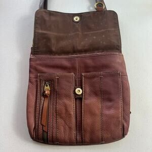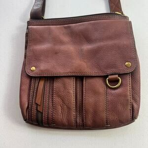 Fossil Morgan Traveler Messenger Crossbody Bag Leather Purse Brown Key Charm Fob