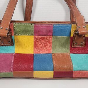Fossil Multi Color Patchwork Leather Purse Shoulder Bag ZB9932 15"×6"