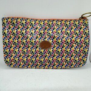 Fossil Multicolor Geometric Pattern Clutch Purse With Zipper Closure & Ring Loop
