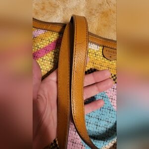 Stylish tote with geometric design. Features vibrant yellow, pink, blue, and tan hues. Ideal for everyday use. today only $30 firm