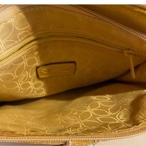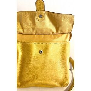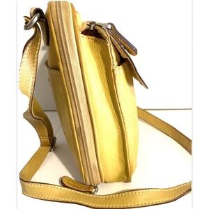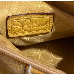 Fossil This mustard yellow crossbody bag is crafted from high-quality leather, featuring a sleek, structured design with a flap closure. The adjustable strap ensures comfort and versatility, making it an ideal choice for carrying your essentials in style.2 compartments 2 zip pockets closure at interior wall 2 open pocket 12 cards slots 2 pin slots pocket at front open pocket at back fabric lining exterior have some stains marks hight 10” wide 9” depth 1.5” strap drop 26” adjustable The dimensions are based on approximately measurements before placing an order please check take a moment to view all photos using feature for a closer look
