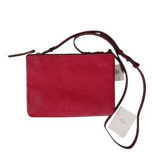 Fossil, NWT Devon Leather Crossbody, Red One Side/ Burgundy on Reverse, 10" X 7"