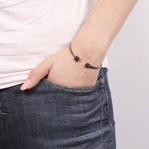 Fossil NWT Square Flex Cuff Bracelet Smoke Crystals Dark Silver-Tone Stainless