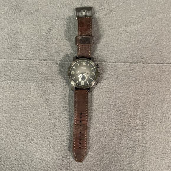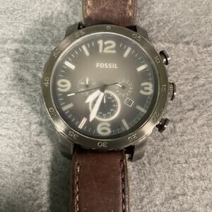 Fossil Nate Chronograph Brown Leather Men's Watch JR1424 ( NEED NEW BATTERY )