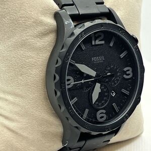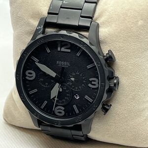 Fossil Nate JR1401 Men Black Stainless Steel Analog Dial Chronograph Watch JMB34