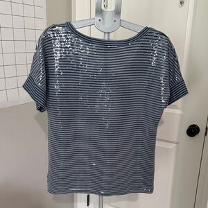 Navy striped tee with shimmering sequins. Perfect for casual outings. EUC smoke free home