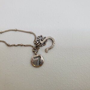 Fossil Necklace Clover 7 Horseshoe Silver Tone Chain Charm Luck Dainty Ball