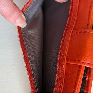 Fossil Orange Cowhide Leather Wallet Bifold Credit Card Zip Compartment Coins