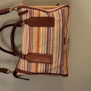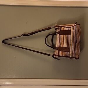 This cotton and polyethylene Satchel features 1 slide pocket, 1 zip pocket,2 side pockets, and an adjustable & detachable crossbody strap with 2 handles.
